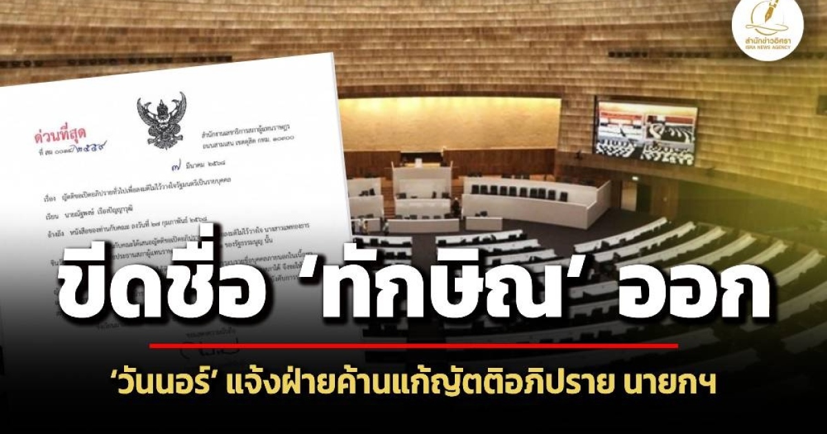 ‘วันนอร์’ ส่งหนังสือถึงฝ่ายค้าน สั่งแก้ญัตติอภิปรายไม่ไว้วางใจ นายกฯ ตัดชื่อ ‘ทักษิณ’ ออก เพราะเป็นบุคคลภายนอก มาชี้แจงในสภาไม่ได้
