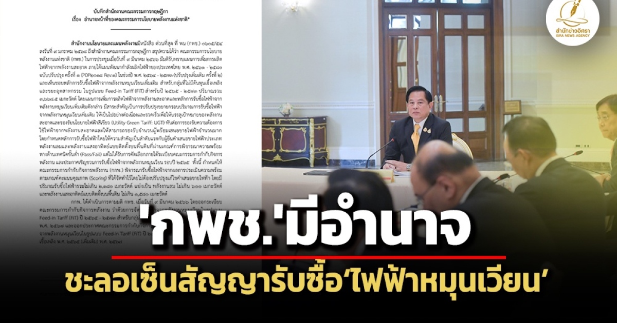 จากกรณีที่เมื่อวันที่ 25 ธ.ค.2567 ที่ประชุมคณะกรรมการนโยบายพลังงานแห่งชาติ (กพช.) มีมติให้ชะลอการรับซื้อไฟฟ้าจากพลังงานหมุนเวียนเพิ่มเติม สำหรับกลุ่มที่ไม่มีต้นทุนเชื้อเพลิงและขยะอุตสาหกรรม ตามแผนการเพิ่มการผลิตไฟฟ้าจากพลังงานสะอาด สำหรับปี 2565-2573 ปริมาณรวม 3,668.5 เมกะวัตต์ (MW) และให้ชะลอการลงนามสัญญากับ 3 การไฟฟ้าไว้ก่อน เพื่อดำเนินการตรวจสอบความถูกต้อง