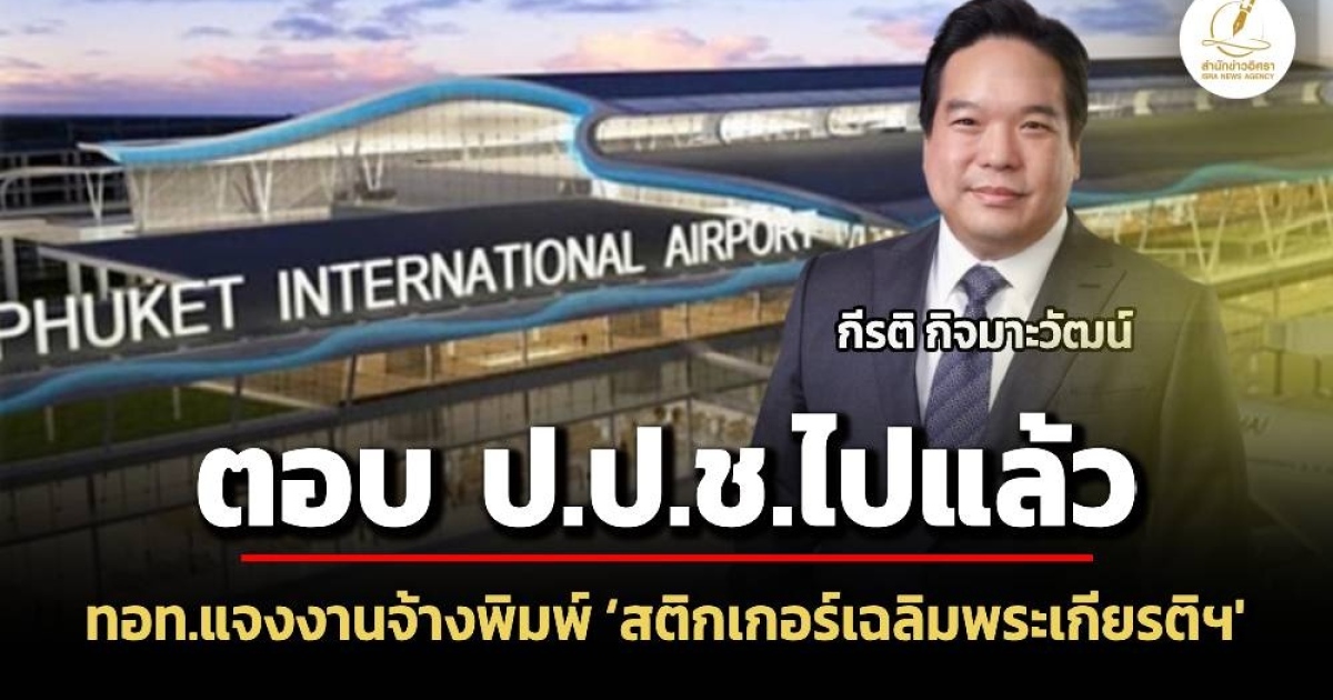 บิ๊กทอท. ‘’กีรติ กิจมานะวัฒน์' อัพเดทกรณีงานจ้างพิมพ์สติกเกอร์เฉลิมพระเกียรติฯ ที่สนามบินภูเก็ต เผยทำหนังสือตอบ ป.ป.ช.ไปแล้วส่วนการทำงานของคณะกรรมการสอบสวนฯยังไปไม่ถึงการสอบสวนวินัยร้ายแรง แต่บอกปลายเดือน มี.ค.นี้รู้ผล ยันไม่มีแพะหรือมวยล้มต้มคนดู