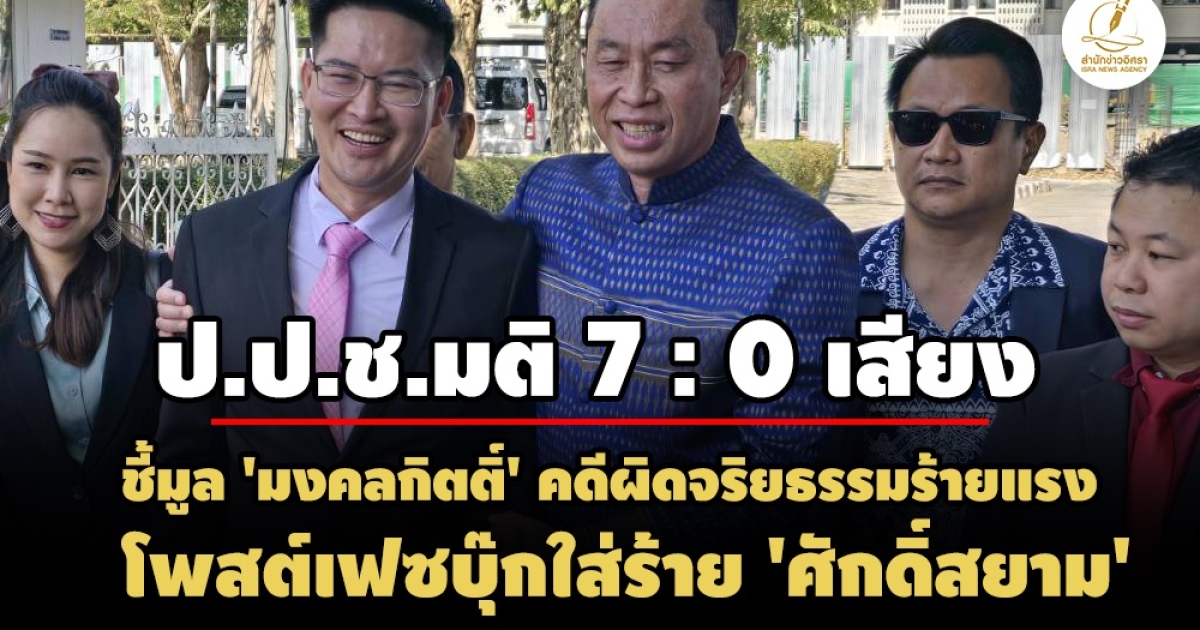ป.ป.ช.ลงมติ 7 : 0 เสียงเอกฉันท์ ชี้มูลความผิด 'เต้-มงคลกิตติ์ สุขสินธารานนท์' อดีต สส.พรรคไทยศรีวิไลย์ คดีผิดจริยธรรมร้ายแรงโพสต์เฟซบุ๊กใสร้าย 'ศักดิ์สยาม ชิดชอบ' อดีต รมว.คมนาคม เที่ยวสถานบันเทิงย่านทองหล่อ ต้นเหตุแพร่กระจายเชื้อไวรัส COVID-19 ปี 64 ด้านเต้-มงคลกิตติ์ เผย ยังไม่ทราบ พร้อมเดินหน้าสู้ในศาลฎีกาต่อไป