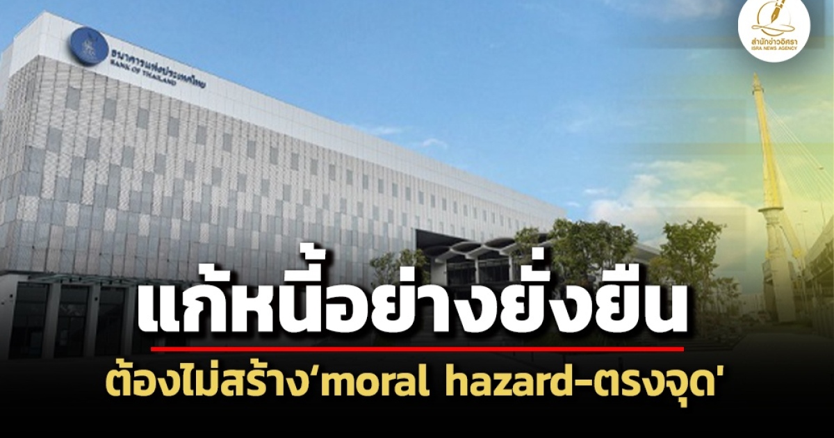 ‘ธปท.’ ชี้แก้ปัญหา 'หนี้ครัวเรือน' อย่าง ‘ยั่งยืน’ ต้องไม่สร้าง moral hazard-แก้ตรงจุด พร้อมระบุขอรอความชัดเจนรูปแบบ ‘ซื้อหนี้ประชาชน’ ก่อน