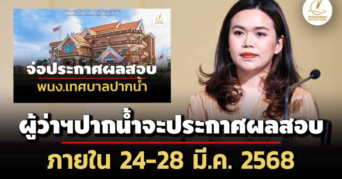 • สัปดาห์หน้ารู้ผล! เลขาฯ มท.1 เผยผู้ว่าฯ ปากน้ำ จะประกาศผลสอบจนท.เทศบาล 24-28 มี.ค.นี้