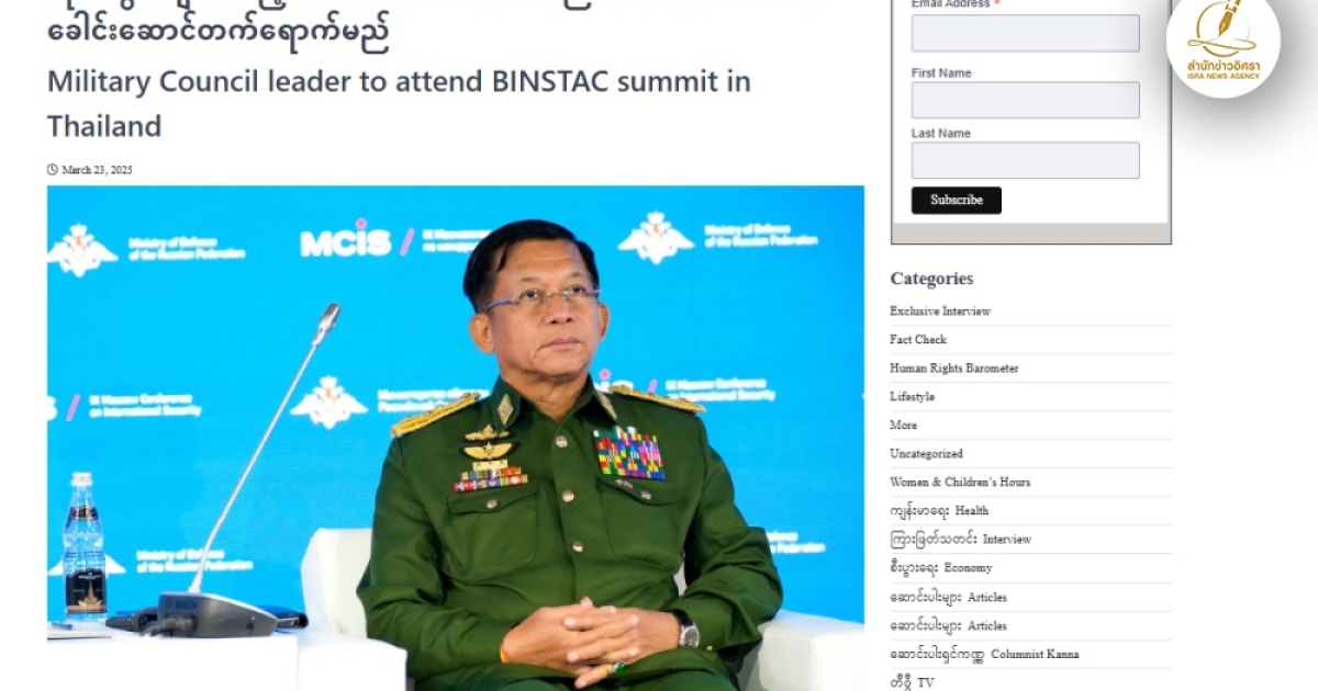 สำนักข่าวอิศรา (www.isranews.org) รายงานข่าวว่าสื่อในเมียนมาได้อ้างอิงแหล่งข่าวระดับสูงในรัฐบาลทหารเมียนมาระบุว่า พล.อ.อาวุโส มิน อ่อง หล่าย ผู้นำรัฐบาลทหารเมียนมาจะเดินทางมาเยือนประเทศไทยเพื่อเข้าร่วมการประชุมสุดยอดครั้งที่ 6 ในโครงการริเริ่มอ่าวเบงกอลเพื่อความร่วมมือด้านเทคนิคและเศรษฐกิจหลายภาคส่วน (BIMSTEC) ซึ่งไทยจะเป็นเจ้าภาพ จัดขึ้นระหว่างวันที่ 2-4 เม.ย. และการเข้าร่วมครั้งนี้จะถือว่าเป็นครั้งแรกที่ ผู้นำรัฐบาลทหารเมียนมามาเยือนกรุงเทพหลังการรัฐประหาร 2564