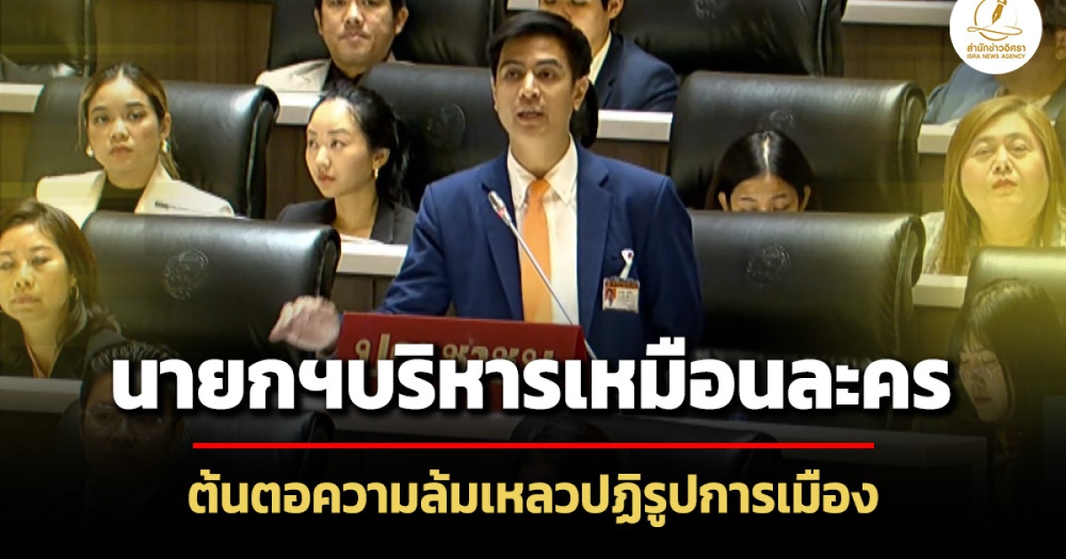 นายพริษฐ์กล่าวว่า การบริหารประเทศและการบริหารการเมืองของรัฐบาลแพทองธาร เป็นเหมือนละครเรื่องหนึ่ง ซึ่งจะมุ่งสู่ความพังพินาศของการเมืองไทย โดยมีการตั้งรัฐบาลโดยอ้างว่าทำเพื่อประเทศชาติ ซึ่งจุดจบของการปฏิรูปการเมืองถูกกำหนดไว้ตั้งแต่จุดเริ่มต้นของรัฐบาลนี้ นอกจากนั้นปากอย่างใจอย่าง ที่นายกฯเสแสร้งว่าอยากปฏิรูปการเมืองแต่ไม่เคยทำให้เห็น