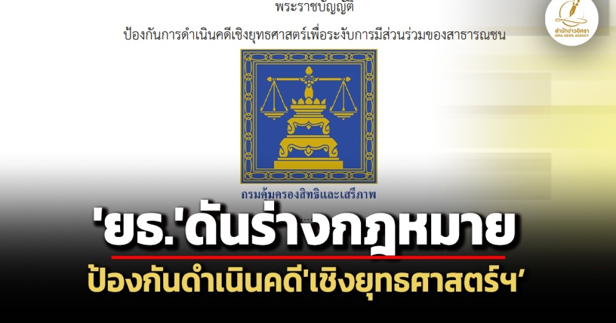 สำนักข่าวอิศรา (www.isranews.org) รายงานว่า เมื่อวันที่ 14 มี.ค.ที่ผ่านมา กรมคุ้มครองสิทธิและเสรีภาพ กระทรวงยุติธรรม (ยธ.) ได้เปิดรับฟังความคิดเห็น ร่าง พ.ร.บ.ป้องกันการดำเนินคดีเชิงยุทธศาสตร์เพื่อระงับการมีส่วนร่วมของสาธารณชน พ.ศ. … โดยร่างกฎหมายฉบับนี้มีวัตถุประสงค์เพื่อป้องกันการดำเนินคดีเชิงยุทธศาสตร์ เพื่อระงับการมีส่วนร่วมของสาธารณชนในการรักษาประโยชน์สาธารณะ