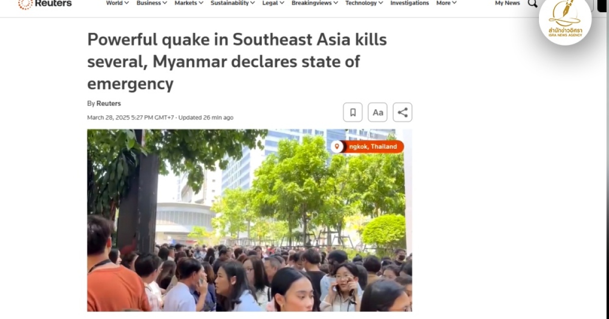 องค์กรกาชาดห่วงแผ่นดินไหวในเมียนมากระทบโครงสร้างเขื่อนในประเทศ ขณะ รบ.ทหารเมียนมาเรียกร้องขอความช่วยเหลือนานาชาติ ขณะสื่อท้องถิ่นเมียนมาเผยตัวเลขผู้เสียชีวิตในมัณฑะเลย์ตอนนี้อยู่ที่ 20 ราย