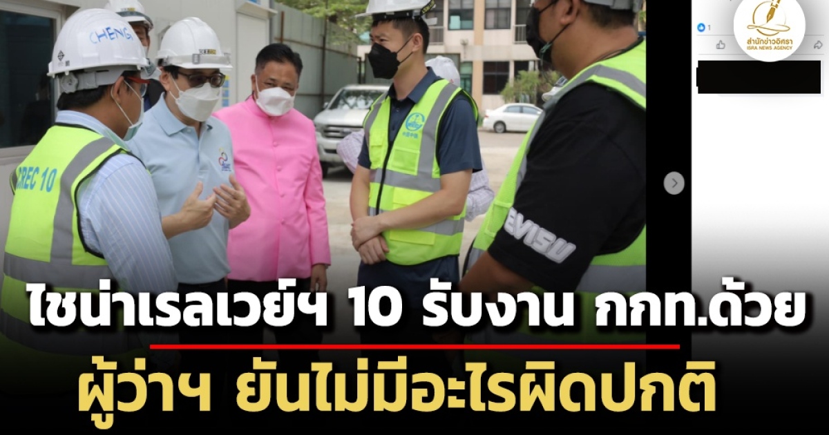 โดยในภาพเฟซบุ๊กพบว่ามีภาพของพนักงานซึ่งสวมเสื้อ CREC10 ซึ่งเป็นตัวย่อบริษัทไชน่าเรลเวย์นัมเบอร์ 10 เดินตรวจและหารืองานกับนายก้องศักดอยู่