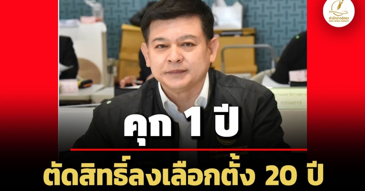 ศาลอาญา พิพากษาจำคุก 'สิระ เจนจาคะ' อดีต สส.กทม. พรรคพลังประชารัฐ 1 ปี ไม่รอลงอาญา พร้อมตัดสิทธิ์ลงเลือกตั้ง 20 ปี เหตุลักไก่ลงสมัครส.ส.ปี 62 ทั้งที่ตัวเองขาดคุณสมบัติ - เจ้าตัวยื่นประกัน