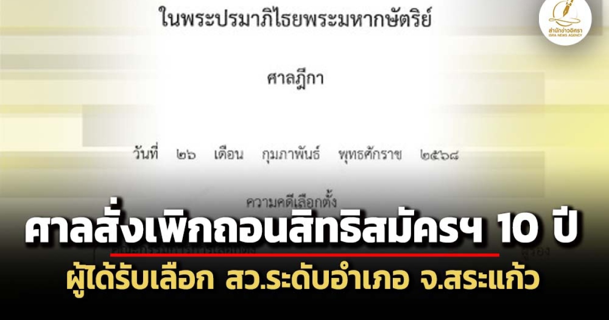 - ศาลฎีกาสั่งเพิกถอนสิทธิฯ 10 ปี ผู้ได้รับเลือก สว.ระดับอำเภอ จ.ศรีสะเกษ มีประวัติยักยอก