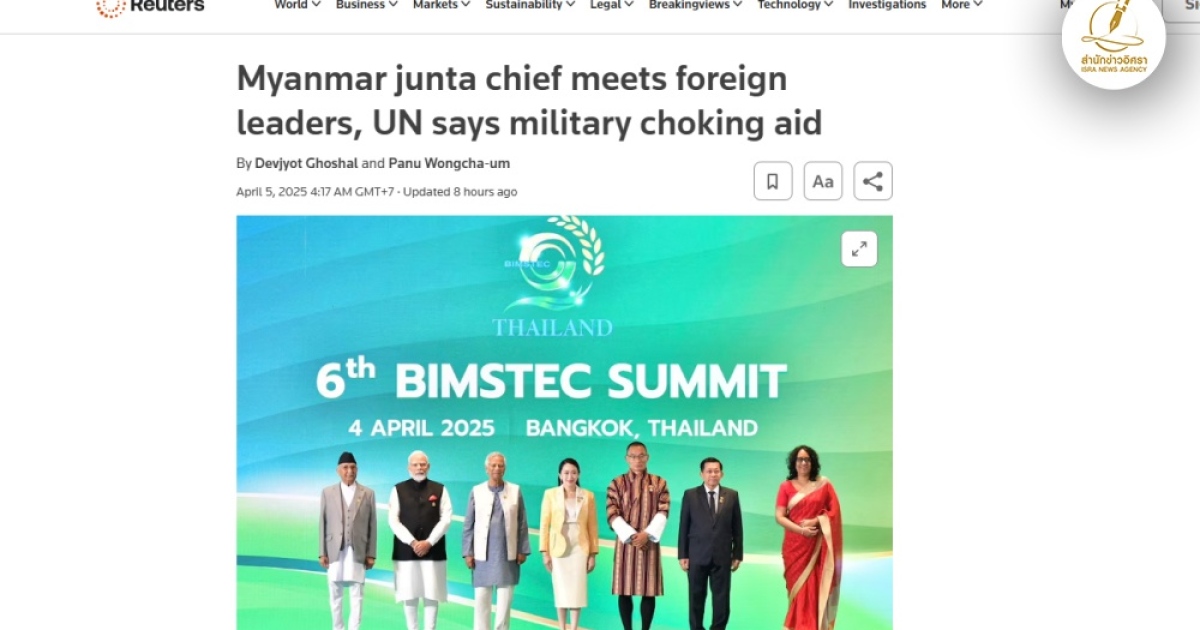 สำนักข่าวอิศรา (www.isranews.org) รายงานผลการประชุมกลุ่มประเทศริมอ่าวเบงกอลหรือที่เรียกว่าการประชุม BIMSTEC ระหว่างวันที่ 2-4 เม.ย.ที่ผ่านมา โดยอ้างอิงรายงานข่าวจากสำนักข่าว Global New Light of Myanmar ซึ่งเป็นสื่อภายใต้การดูแลของรัฐบาลเมียนมาว่า พล.อ.อาวุโส มิน อ่อง หล่าย ผู้นำรัฐบาลทหารเมียนมา ได้มีการพบปะกับ น.ส.แพทองธาร ชินวัตร นายกรัฐมนตรีไทยที่โรงแรมแชงกรีลาเมื่อคืนวันที่ 4 เม.ย.