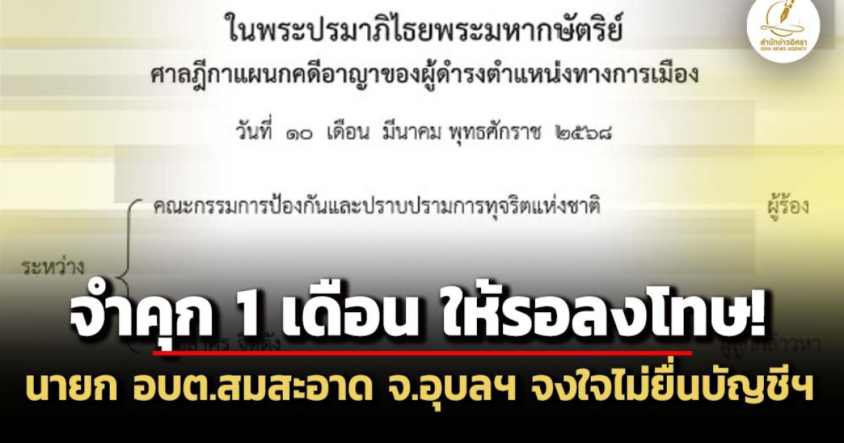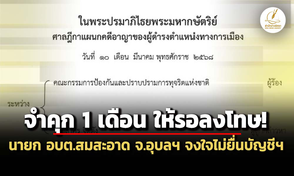 - ศาลฎีกาฯพิพากษาคุก 1 เดือน นายก อบต.หนองแสงใหญ่ จ.อุบลฯ จงใจไม่ยื่นบัญชีฯ-รอลงโทษ(4)