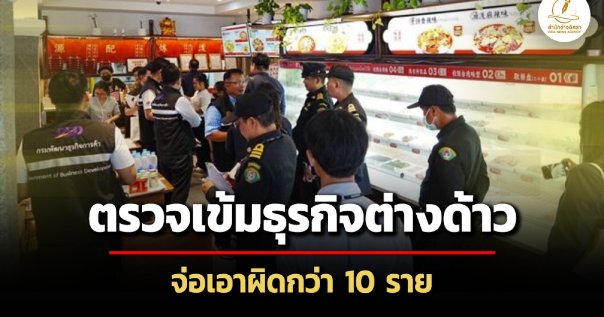 สำนักข่าวอิศรา (www.isranews.org) รายงานว่า เมื่อวันที่ 25 เมษายน 2568 นายนภินทร ศรีสรรพางค์ รัฐมนตรีช่วยว่าการกระทรวงพาณิชย์ เปิดเผยว่า “ตามที่คณะกรรมการบริหารจัดการแก้ไขปัญหาสินค้าและธุรกิจต่างประเทศที่ฝ่าฝืนกฎหมาย ซึ่งมีนายพิชัย นริพทะพันธุ์ รัฐมนตรีว่าการกระทรวงพาณิชย์ เป็นประธาน ได้มีคำสั่งแต่งตั้งคณะทำงานปราบปรามสินค้าและธุรกิจต่างประเทศที่ฝ่าฝืนกฎหมาย โดยมีร้อยตรีจักรา ยอดมณี รองปลัดกระทรวงพาณิชย์ เป็นประธาน ได้รับรายงานว่า เมื่อวันที่ 25 เมษายน 2568 คณะทำงานฯ โดยรองปลัดกระทรวงพาณิชย์ พร้อมด้วยหม่อมหลวงภู่ทอง ทองใหญ่ รองอธิบดีกรมพัฒนาธุรกิจการค้า ได้นำกำลังเจ้าหน้าที่กรมพัฒนาธุรกิจการค้า กรมการจัดหางาน สำนักงานตรวจคนเข้าเมือง (ตม.) กองบังคับการปราบปรามการกระทำความผิดเกี่ยวกับอาชญกรรมทางเศรษฐกิจ (บก.ปอศ.) และสำนักงานเขตห้วยขวาง ลงพื้นที่ย่านห้วยขวาง (ถนนประชาราษฎร์บำเพ็ญและถนนรัชดาภิเษก) ตรวจสอบร้านอาหาร จำนวน 10 ร้าน ซูเปอร์มาร์เก็ต 1 ร้าน และสถานประกอบการนายหน้าอสังหาริมทรัพย์ 1 ราย ว่ามีการกระทำที่ฝ่าฝืนกฎหมายหรือไม่ โดยเฉพาะกฎหมายการประกอบธุรกิจของคนต่างด้าว กฎหมายแรงงาน กฎหมายคนเข้าเมือง และกฎหมายเกี่ยวกับการสุขาภิบาลอาหาร