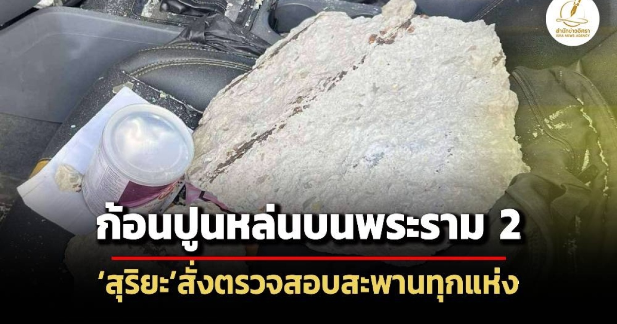 ก้อนปูนสะพานข้ามถนนพระราม 2 หล่นใส่รถคน เจ็บ 1 ราย ‘สุริยะ’ สั่งตรวจสอบมาตรฐานสะพานทุกแห่ง ก่อนเยียวยาผู้บาดเจ็บ และตรวจสอบสาเหตุอย่างละเอียด