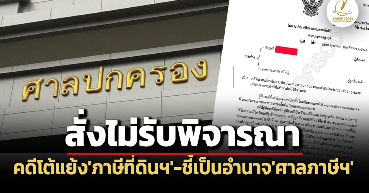 ‘ศาลปกครองสูงสุด’ สั่งไม่รับคำฟ้องคดีโต้แย้ง ‘ประเมินภาษีที่ดินและสิ่งปลูกสร้างฯ’ ไว้พิจารณา ชี้อำนาจพิพากษาเป็นของ ‘ศาลภาษีอากร’