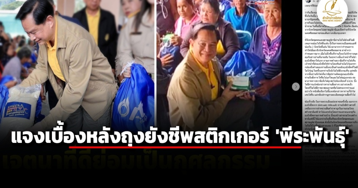 สำนักข่าวอิศรา (www.isranews.org) รายงานข่าวเกี่ยวกับข้อครหาของนายพีระพันธุ์ สาลีรัฐวิภาค รองนายกรัฐมนตรี และรัฐมนตรีว่าการกระทรวงพลังงาน ในรัฐบาล น.ส.แพทองธาร ชินวัตร นายกรัฐมนตรี ว่าได้ฝ่าฝืนมาตรฐานจริยธรรมอย่างร้ายแรงในการแจกถุงยังชีพให้แก่ชาวบ้านที่ประสบภัยน้ำท่วม ซึ่งเป็นของ บริษัท ปตท. จำกัด (มหาชน) ที่งบประมาณที่ใช้ในการจัดซื้อถือเป็นเงินหลวง แต่กลับติดสติกเกอร์รูปและชื่อของตัวเอง เป็นการใช้ทรัพย์สินของหลวงเพื่อประโยชน์ของตนเอง โดยคณะกรรมการป้องกันและปราบปรามการทุจริตแห่งชาติ (ป.ป.ช.) ได้แจ้งข้อกล่าวหานายพีระพันธุ์เพื่อให้รับทราบ ภายในวันที่ 15 พฤษภาคม 2568