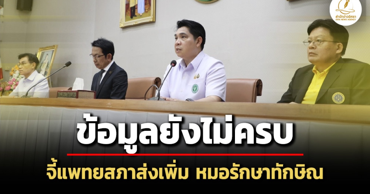 สำนักข่าวอิศรา (www.isranews.org) รายงานว่า เมื่อวันที่ 20 พ.ค. 2568 มีการประชุมคณะกรรมการเสนอความเห็นสภานายกพิเศษเพื่อพิจารณา ตามมาตรา 25 แห่ง พ.ร.บ.วิชาชีพเวชกรรม พ.ศ.2525 พิจารณาปมมติแพทยสภาลงโทษแพทย์รักษา 'ทักษิณ ชินวัตร' ที่ชั้น 14 รพ.ตำรวจ ซึ่งแต่งตั้งโดย นายสมศักดิ์ เทพสุทิน รัฐมนตรีว่าการกระทรวงสาธารณสุข(สธ.) พิจารณาก่อนส่งกลับคณะกรรมการแพทยสภาว่าจะเห็นด้วย หรือวีโต้ ภายในระยะเวลา 15 วัน โดยวันนี้คณะกรรมการมาครบทุกท่าน และประชุมบริเวณใกล้ห้องทำงานรมว.สาธารณสุข ที่ชั้น 4 อาคารสำนักงานปลัดกระทรวงสาธารณสุข (สป.สธ.)