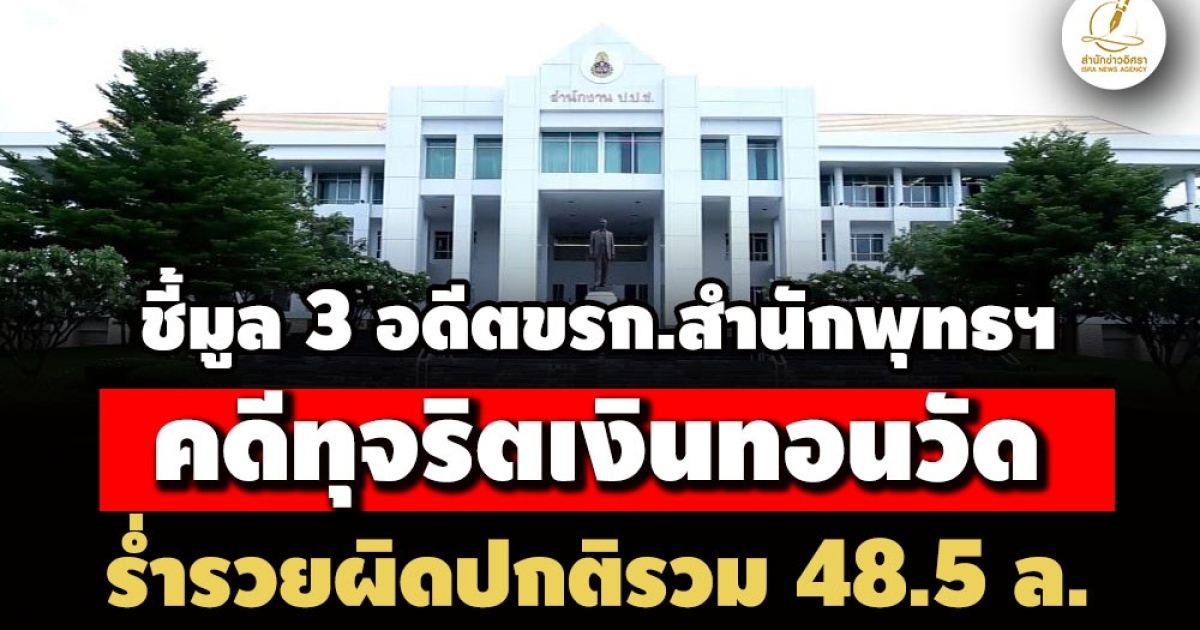 สำนักข่าวอิศรา (www.isranews.org) รายงานว่า เมื่อวันที่ 28 พฤษภาคม 2568 สำนักงานคณะกรรมการป้องกันการทุจริตแห่งชาติ (ป.ป.ช.) เผยแพร่ข่าวมติคณะกรรมการ ป.ป.ช. ชี้มูลความผิดคดีร่ำรวยผิดปกติอดีตเจ้าหน้าที่รัฐ สังกัดสำนักงานพระพุทธศาสนาแห่งชาติ กรณีทุจริตเงินอุดหนุนวัด จำนวน 3 ราย ทรัพย์สินรวมมูลค่ากว่า 48.5 ล้านบาท