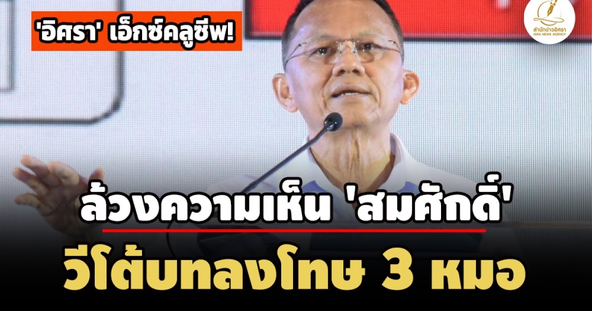 'อิศรา' เอ็กซ์คลูซีพ! เปิดความเห็น 'สมศักดิ์ เทพสุทิน' ส่งแพทยสภา กรณี 'ทักษิณ' ชั้น 14 เห็นด้วยยกคำร้อง 1 ราย ส่วนบทลงโทษ 3 หมอ วีโต้หมด ชี้พฤติการณ์นายแพทย์ใหญ่ รพ.ตร.คนปัจจุบัน ในฐานะผู้ออกใบความเห็นไม่ได้ผิดมาตรฐานหรือให้ความเท็จ แต่เป็นการให้ความเห็นในการใส่ใจดูแลผู้ป่วย