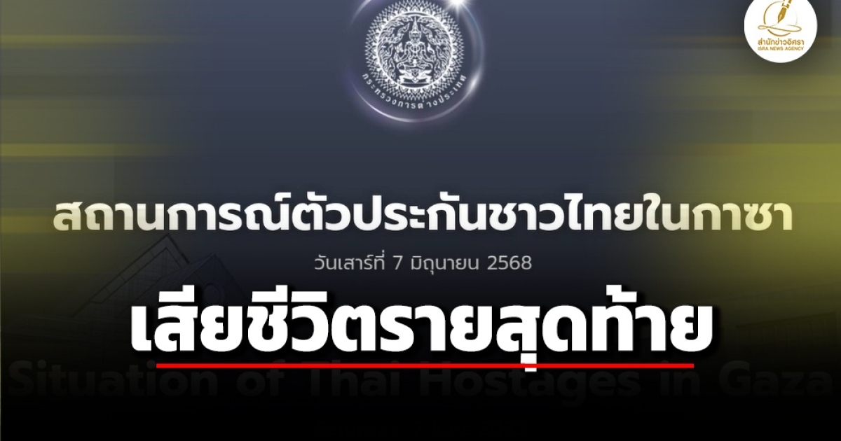 แพทองธาร ชินวัตร นายกรัฐมนตรี โพสต์ข้อความ แสดงความเสียใจ ณัฐพงษ์ ปินตา ตัวประกันคนไทยรายสุดท้ายในฉนวนกาซาเสียชีวิต-เรียกร้องคืนร่างตัวประกันชาวไทยทั้งหมดกลับสู่ประเทศไทย ด้านกระทรวงต่างประเทศ เผย คนไทยอีก 2 รายที่เสียชีวิตเมื่อปี 67 ยังไม่พบร่าง
