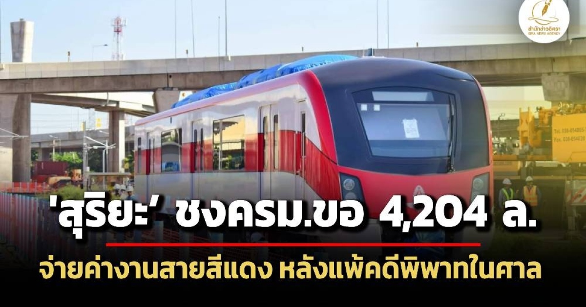 ‘สุริยะ’ เตรียมเสนอครม. ของบ 4,204 ล้านบาท จ่ายค่างานเพิ่มโครงการรถไฟฟ้าสายสีแดง หลังแพ้คดีศาลปกครองสูงสุด ด้านผู้ว่าฯรฟท.เผยหารือร่วมเอกชนแล้วไม่เป็นผล ยืนยันราคาเดิม