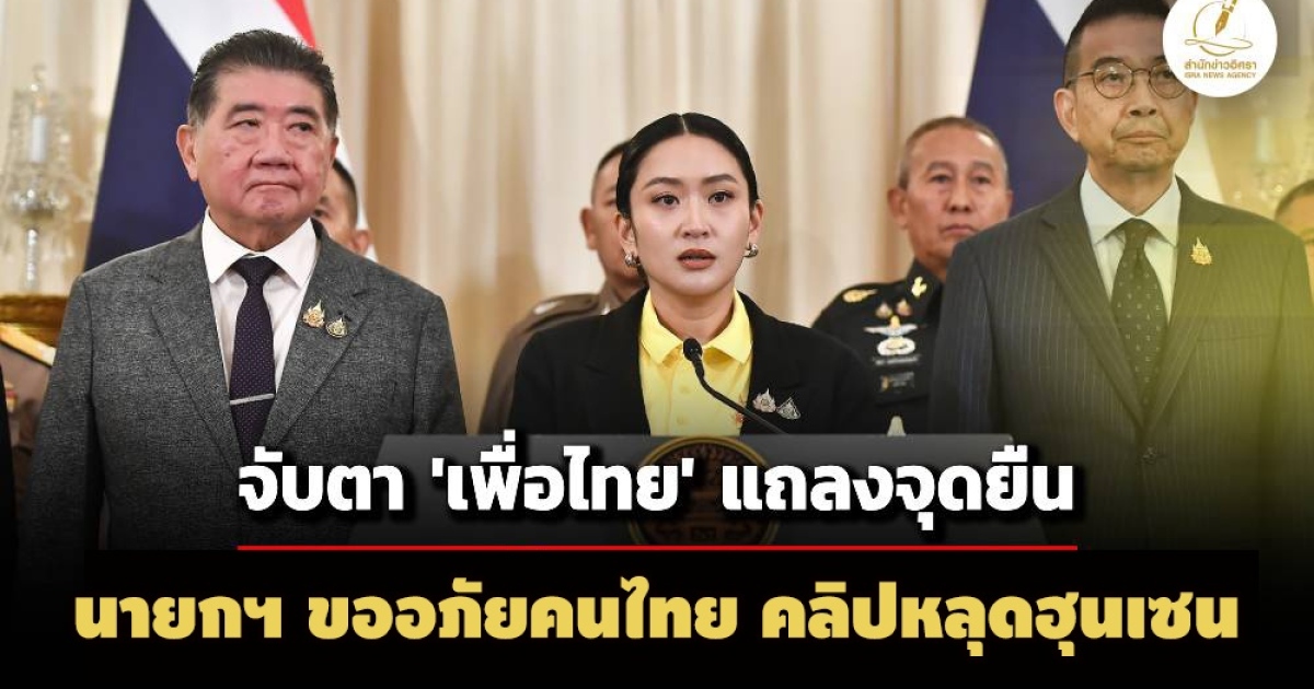 สำนักข่าวอิศรา (www.isranews.org) รายงานว่า วันที่ 19 มิ.ย. 2568 ที่ทำเนียบรัฐบาล นางสาวแพทองธาร ชินวัตร นายกรัฐมนตรี พร้อมด้วยนายภูมิธรรม เวชยชัย รองนายกรัฐมนตรีและรัฐมนตรีว่าการกระทรวงกลาโหม, นายมาริษ เสงี่ยมพงษ์ รัฐมนตรีว่าการกระทรวงการต่างประเทศ, พลเอก ณัฐพล นาคพาณิชย์ รัฐมนตรีช่วยว่ากากระทรวงกลาโหม, พลเอก ทรงวิทย์ หนุนภักดี ผู้บัญชาการทหารสูงสุด (ผบ.สส.) , พลเอก พนา แคล้วปลอดทุกข์ ผู้บัญชาการทหารบก (ผบ.ทบ.) , พลตำรวจเอก กิตติ์รัฐ พันธุ์เพ็ชร์ ผู้บัญชาการตำรวจแห่งชาติ (ผบ.ตร.) , พลเอก ธราพงษ์ มะละคำ รองปลัดกระทรวงกลาโหม, พลเรือเอก ไพโรจน์ เฟื่องจันทร์ เสนาธิการทหารเรือ และพลอากาศเอก วชิระพล เมืองน้อย เสนาธิการทหารอากาศผู้บัญชาการเหล่าทัพ และหน่วยงานความมั่นคง แถลงหลังเรียกประชุมหน่วยงานความมั่นคงเกี่ยวกับสถานการณ์ชายแดนไทย-กัมพูชา