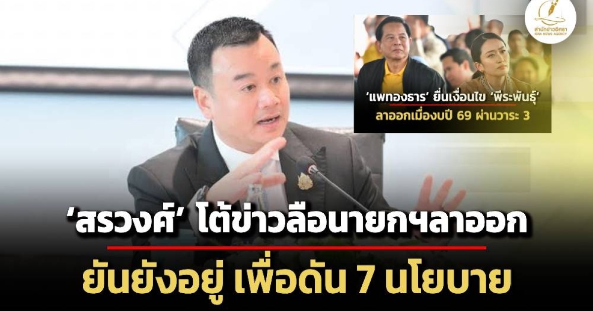 ‘สรวงศ์’ โต้ข่าวนายกฯออกหลังบปี 69 วาระสามผ่านไม่จริง ยืนยันอยู่ต่อจนครบวาระ ชี้ต้องดัน 7 นโยบายรัฐบาลก่อน
