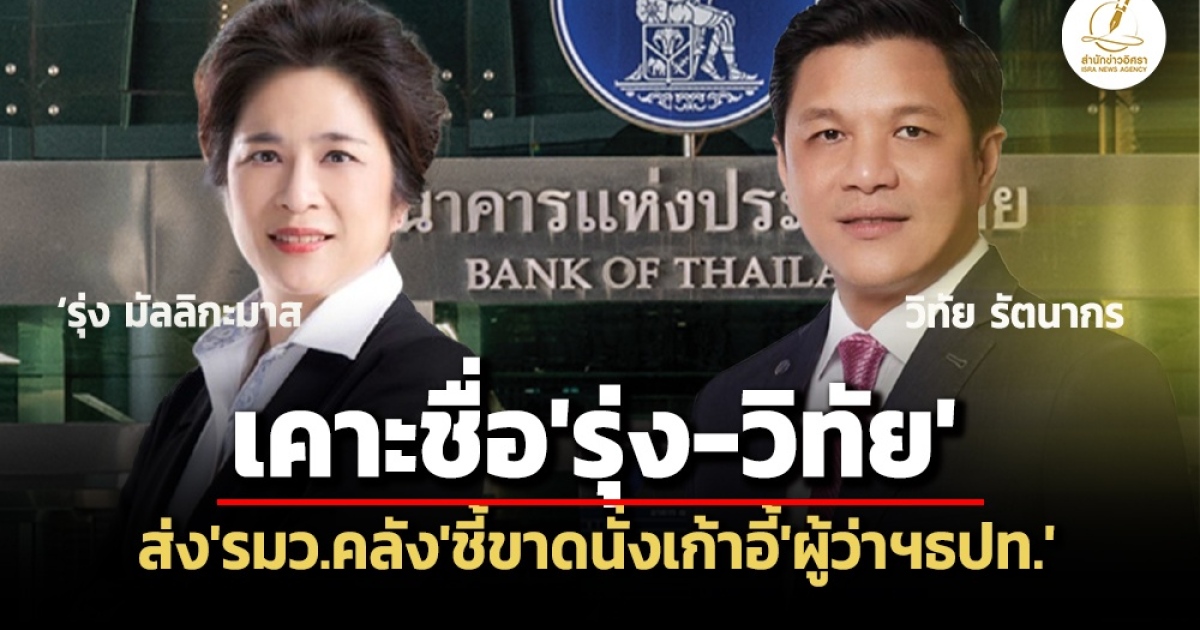 ‘บอร์ดคัดเลือกฯ’ เคาะ 2 รายชื่อ ‘รุ่ง มัลลิกะมาส-วิทัย รัตนากร’ ส่ง ‘รมว.คลัง’ ชี้ขาดนั่งเก้าอี้ ‘ผู้ว่าฯธปท.’ คนใหม่ ก่อนเสนอ ครม.ไฟเขียว