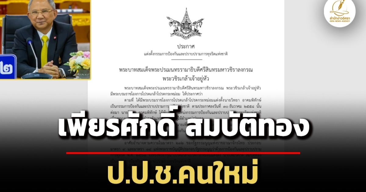 สำนักข่าวอิศรา (www.isranews.org) รายงานว่าเมื่อวันที่ 1 กรกฎาคม 2568 เว็บไซต์ ราชกิจจานุเบกษา เผยแพร่ พระบรมราชโองการ ประกาศ แต่งตั้งกรรมการป้องกันและปราบปรามการทุจริตแห่งชาติ