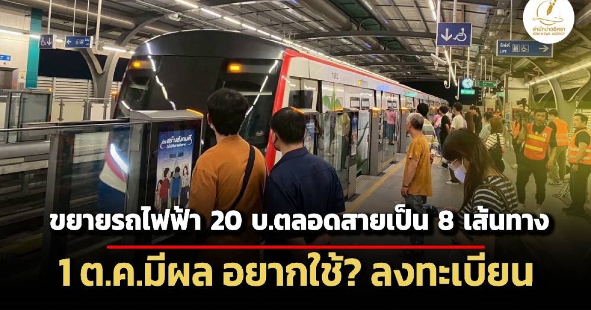 ครม.เห็นชอบมาตรการรถไฟฟ้า 20 บาท เพิ่มเป็น 8 สายทาง ชี้ชัดต้องลงทะเบียนก่อนจึงจะใช้ได้ และใช้มาตรการได้ผ่านบัตร EMV และ บัตรแรบบิท มีผล 1 ต.ค.นี้ เผยงบชดเชยรวม 5,000 กว่าล้านบาท