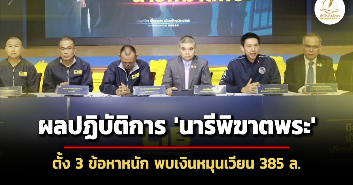 ตำรวจสอบสวนกลาง แถลงผลปฏิบัติการ 'นารีพิฆาตพระ' จับกุม 'สีกากอล์ฟ' ตั้ง 3 ข้อหาหนัก 'สนับสนุนเจ้าพนักงานปฏิบัติหน้าที่โดยมิชอบ-รับของโจร-ฟอกเงิน' พบเงินหมุนเวียน 385 ล้าน เตรียมขยายผลโยงเว็บพนัน