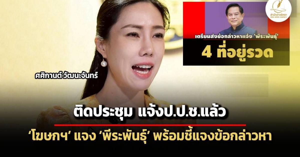 ‘ศศิกานต์ วัฒนะจันทร์’ โต้ข่าว ‘พีระพันธุ์’ไม่ไปรับทราบข้อกล่าวหากรณีถูกคณะกรรมการไต่สวนของ ป.ป.ช.กล่าวหาฝ่าฝืนมาตรฐานจริยธรรมอย่างร้ายแรง กรณีแจกถุงยังชีพช่วยเหลือน้ำท่วม ชี้ติดภารกิจประชุมสำคัญ โดยแจ้งป.ป.ช.ไปตั้ง 15 ก.ค. เผยพร้อมแจงทุกประเด็น