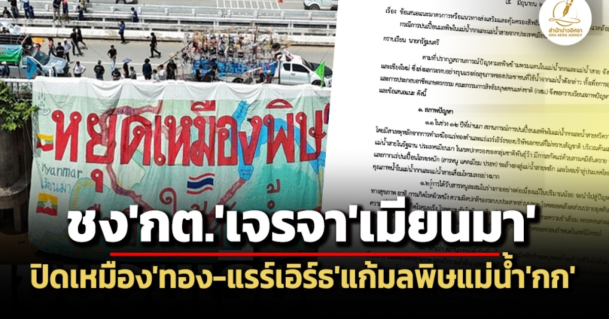 ครม. รับทราบข้อเสนอแนะ ‘กสม.’ แก้ปัญหา ‘แม่น้ำกก-แม่น้ำสาย’ ปนเปื้อนมลพิษจากทำเหมืองแร่ ‘ทองคำ-แรร์เอิร์ธ’ ในเมียนมา ชง ‘ก.ต่างประเทศ-กลาโหม’ เจรจาประเทศต้นกำเนิดมลพิษ ยุติประกอบกิจการทำ ‘เหมือง’ โดยเร็วที่สุด