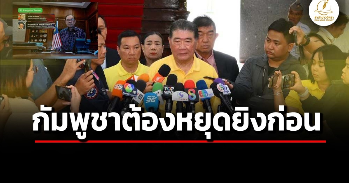 ภูมิธรรม เวชยชัย ไม่ขัดข้อง หาก อันวาร์ อิบราฮิม นายกฯ มาเลเซีย-ประธานอาเซียน อาสาเป็นคนกลางเจรจายุติปัญหาความขัดแย้งชายแดนไทย-กัมพูชา แต่ขอความชัดเจนของกัมพูชาหยุดยิงก่อน ประณาม ฮุนเซน-ฮุนมาเนต ต้องรับผิดชอบ ยิงพลเรือนเสียชีวิต ผิดหลักกฎหมายระหว่างประเทศ เข้าข่ายสร้างอาชกรรมข้ามชาติ