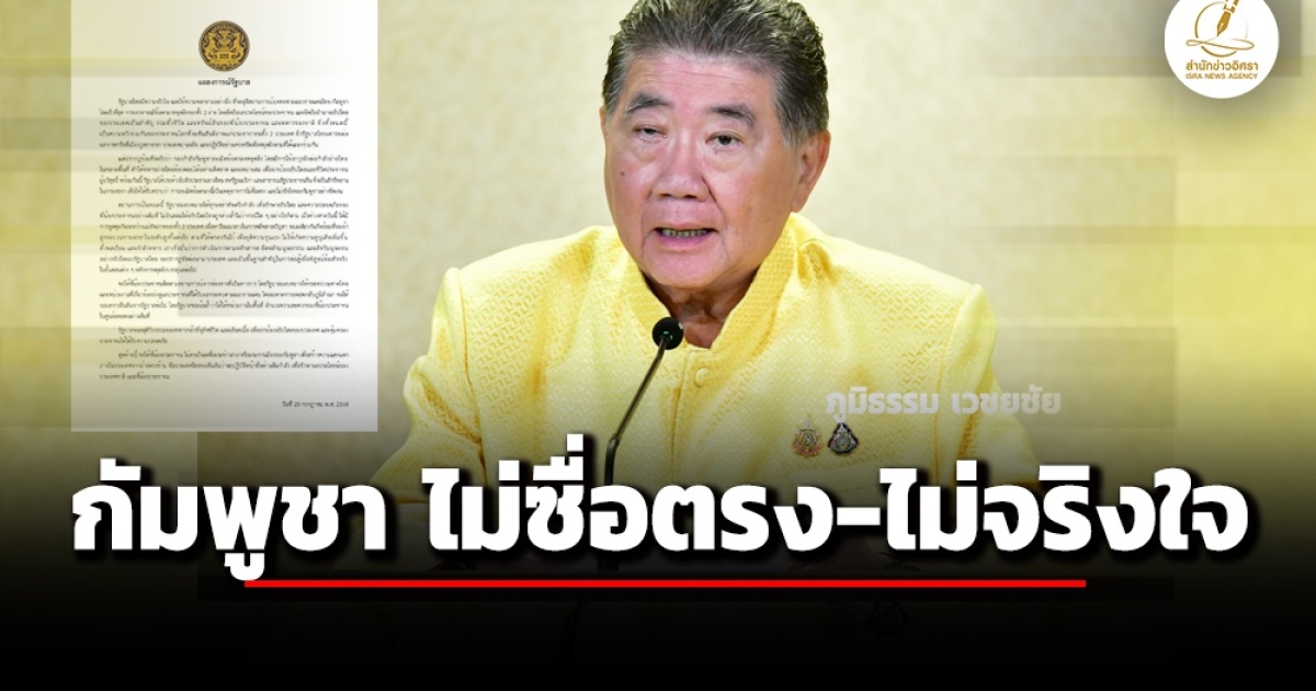 สำนักข่าวอิศรา (www.isranews.org) รายงานว่า วันที่ 29 กรกฎาคม 2568 ที่ทำเนียบรัฐบาล นายภูมิธรรม เวชยชัย รองนายกรัฐมนตรีและรมว.มหาดไทย รักษาราชการแทนนายกรัฐมนตรี แถลงการณ์รัฐบาลกรณีกัมพูชาละเมิดข้อตกลงหยุดยิงว่า รัฐบาลไทยมีความจริงใจ และใช้ความพยายามอย่างยิ่งที่จะยุติสถานการณ์ปะทะตามแนวชายแดนไทย-กัมพูชาโดยเร็วที่สุด