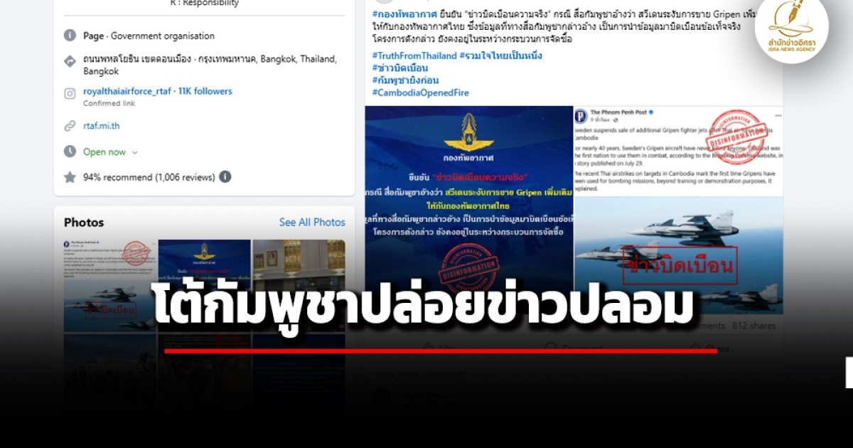 สำนักข่าวอิศรา (www.isranews.org) รายงานข่าวว่าเมื่อวันที่ 1 ส.ค.เฟซบุ๊กกองทัพอากาศได้โพสต์ข้อความชี้แจงกรณี สื่อกัมพูชาอ้างว่า สวีเดนระงับการขาย Gripen (เครืองบินรบกริเพน) เพิ่มเติม ให้กับกองทัพอากาศไทย ซึ่งข้อมูลที่ทางสื่อกัมพูชากล่าวอ้าง เป็นการนำข้อมูลมาบิดเบือนข้อเท็จจริง โครงการดังกล่าว ยังคงอยู่ในระหว่างกระบวนการจัดซื้อ