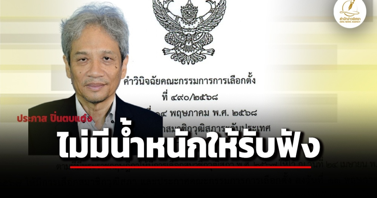 สำนักข่าวอิศรา (www.isranews.org) รายงานว่า วันที่ 3 สิงหาคม 2568 สำนักงานคณะกรรมการการเลือกตั้ง (กกต.) เผยแพร่คำวินิจฉัย กกต. ที่ 490/2568 ลงวันที่ 14 พฤษภาคม 2568 ลงนามโดย นายอิทธิพร บุญประคอง ประธานคณะกรรมการ กกต. มีคำสั่งให้ยกคำร้องนายประภาส ปิ่นตบแต่ง สมาชิกวุฒิสภา (สว.) ผู้มีสิทธิเลือกระดับประเทศ กลุ่มที่ 17 หมายเลข 70 ถูกร้องว่ากระทำอันเป็นการฝ่าฝืนพระราชบัญญัติประกอบรัฐธรรมนูญ (พ.ร.ป.) ว่าด้วยการได้มาซึ่ง สว. พ.ศ. 2561 มาตรา 11 (17) มาตรา 13 (3) และมาตรา 74 กรณีสมัครรับเลือกเป็น สว. โดยรู้อยู่แล้วว่าตนไม่มีสิทธิ์สมัครรับเลือก เพราะไม่ใช่บุคคลซึ่งมีความรู้ ความเชี่ยวชาญ และประสบการณ์ หรือทำงานในด้านที่สมัครไม่น้อยกว่า 10 ปี
