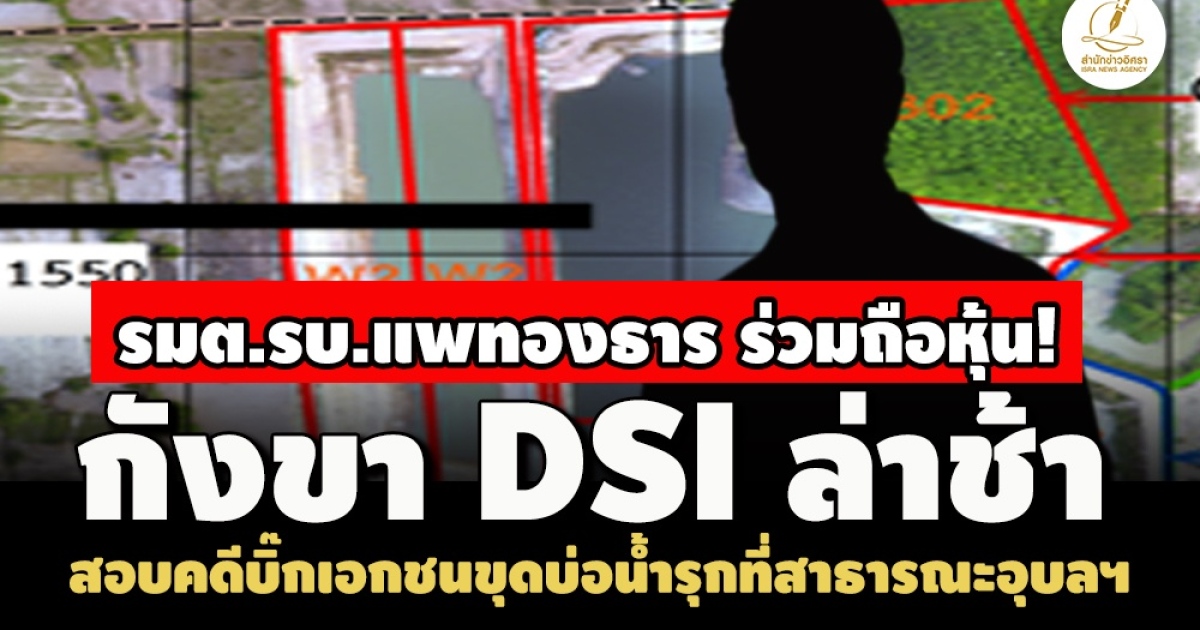 เผย ดีเอสไอ สอบสวนคดีบิ๊กเอกชน ขุดบ่อน้ำบุกรุกที่สาธารณะประโยชน์ ตำบลสีวิเชียร อำเภอน้ำยืน อุบลราชธานี ล่าช้ามาก ป.ป.ช.ส่งสำนวนคืนให้สอบสวนตั้งแต่ปี 62 ปัจจุบันผ่านไป 6 ปี ยังส่งเรื่องอัยการฟ้องคดีไม่ได้ เหตุมีเลื่อนรับทราบข้อกล่าวหาหลายครั้ง จนใกล้จะหมดอายุความ กังขาสาเหตุ รมต.รัฐบาลแพทองธาร ชินวัตร ร่วมถือหุ้นด้วย