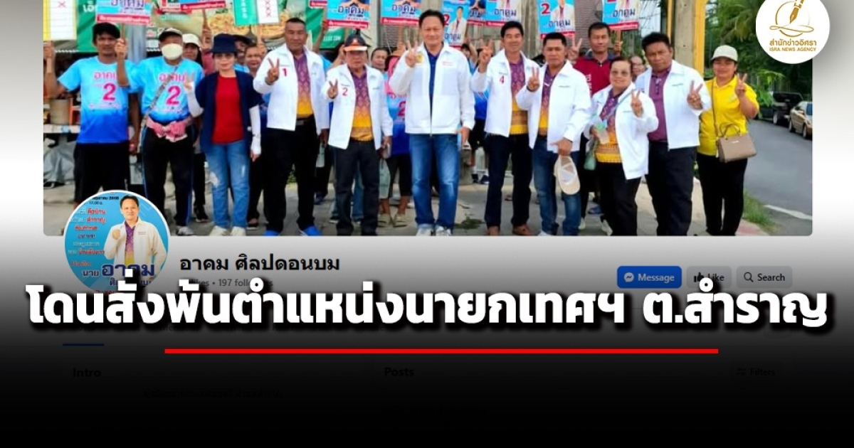 สำนักข่าวอิศรา (www.isranews.org) รายงานว่าเมื่อวันที่ 25 ก.ค.ที่ผ่านมา นายไกรสร กองฉลาด ผู้ว่าราชการจังหวัดขอนแก่น ได้ลงนามในเอกสารสั่งให้นายนายอาคม ศิลปดอนบม พ้นจากหน้าที่ นายกเทศมนตรีตําบลสําราญ