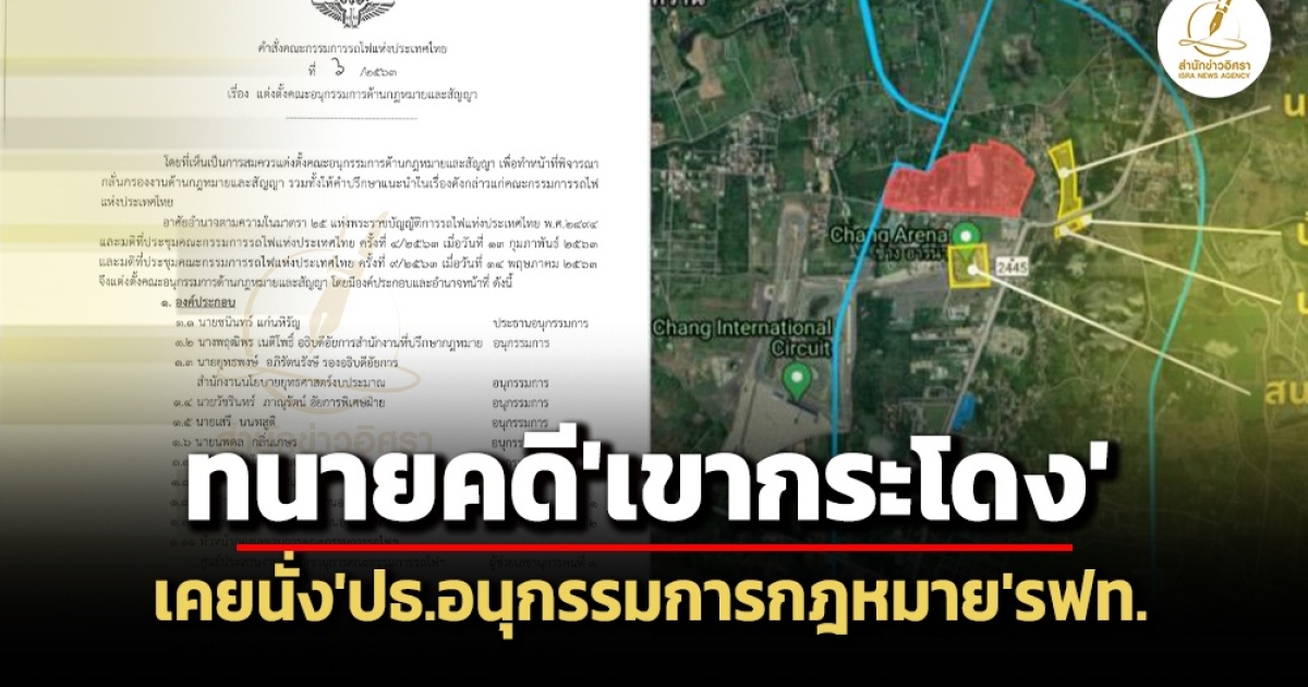 จากกรณีที่เมื่อวันที่ 7 ส.ค.ที่ผ่านมา นายชนินทร์ แก่นหิรัญ ในฐานะทนายความผู้รับผิดชอบคดีเขากระโดง และทนายความของครอบครัว ‘ชิดชอบ’ เปิดแถลงข่าวกรณีกระทรวงมหาดไทย โดยอธิบดีกรมที่ดิน เตรียมดำเนินการเพิกถอนเอกสารสิทธิในที่ดินที่ทับที่ดินของการรถไฟแห่งประเทศไทย (รฟท.) บริเวณเขากระโดง จ.บุรีรัมย์ เนื้อที่ 5,083 ไร่ โดยระบุว่า ที่ดินพิพาทเขากระโดงนั้น ชาวบ้านและผู้ประกอบการในพื้นที่ยังคงมีสิทธิในที่ดินโดยชอบด้วยกฎหมาย