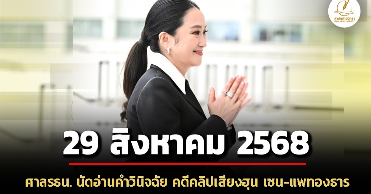สำนักข่าวอิศรา (www.isranews.org) รายงานว่า วันที่ 21 สิงหาคม 2568 เมื่อเวลา 09.28 น. ที่ศาลรัฐธรรมนูญ น.ส.แพทองธาร ชินวัตร รมว.วัฒนธรรม ผู้อยู่ระหว่างหยุดปฏิบัติหน้าที่นายกรัฐมนตรี เดินทางมาถึงศาลรัฐธรรมนูญ เพื่อให้ถ้อยคำ กรณีนายมงคล สุระสัจจะ ประธานวุฒิสภา ยื่นคำร้องของสมาชิกวุฒิสภา (สว.) จำนวน 36 คน ขอให้ศาลรัฐธรรมนูญพิจารณาวินิจฉัยความเป็นนายกรัฐมนตรีสิ้นสุดลงตามรัฐธรรมนูญ มาตรา 170 วรรคหนึ่ง (4) ประกอบมาตรา 160 (4) และ (5) ไม่มีความซื้อสัตย์สุจริตเป็นที่ประจักษ์ หรือไม่ กรณีปรากฎคลิปเสียงสนทนาระหว่างน.ส.แพทองธาร กับสมเด็จ ฮุน เซน ประธานวุฒิสภาแห่งกัมพูชา ทั้งนี้ ศาลรัฐธรรมนูญนัดไต่สวนพยานบุคคล รวม 2 ปาก ในเวลา 10.30 น.