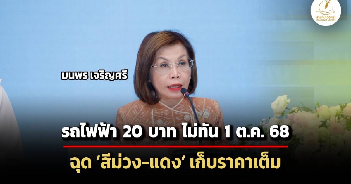 ‘มนพร’ ยอมรับรถไฟฟ้า 20 บาทไม่ทัน 1 ต.ค.นี้ เพราะกฎหมาย 3 ฉบับผ่านไม่ทัน กระทบสายสีม่วง-แดงจ่อไม่เก็บ 20 บาท เพราะเอาโครงการไปรวมไว้ด้วย