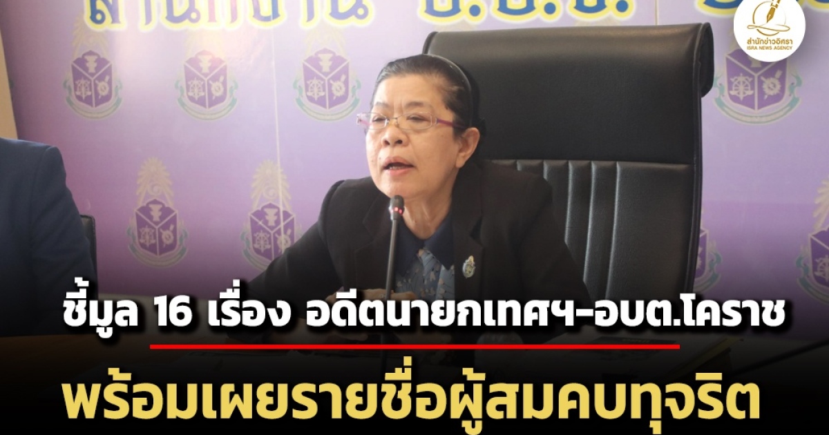 ป.ป.ช.โคราชแจงชี้มูล 16 เรื่อง อดีตนายกเทศฯตำบล-อบต. ทำผิดหลายข้อหา ทั้งไม่ดำเนินการกับผู้ทิ้งงาน จัดซื้อที่ดินเอื้อประโยชน์ตัวเอง มีส่วนร่วมกับธุรกิจคู่สัญญารัฐ-เผยรายชื่อเอกชน ขรก.ร่วมกันทุจริตเพียบ