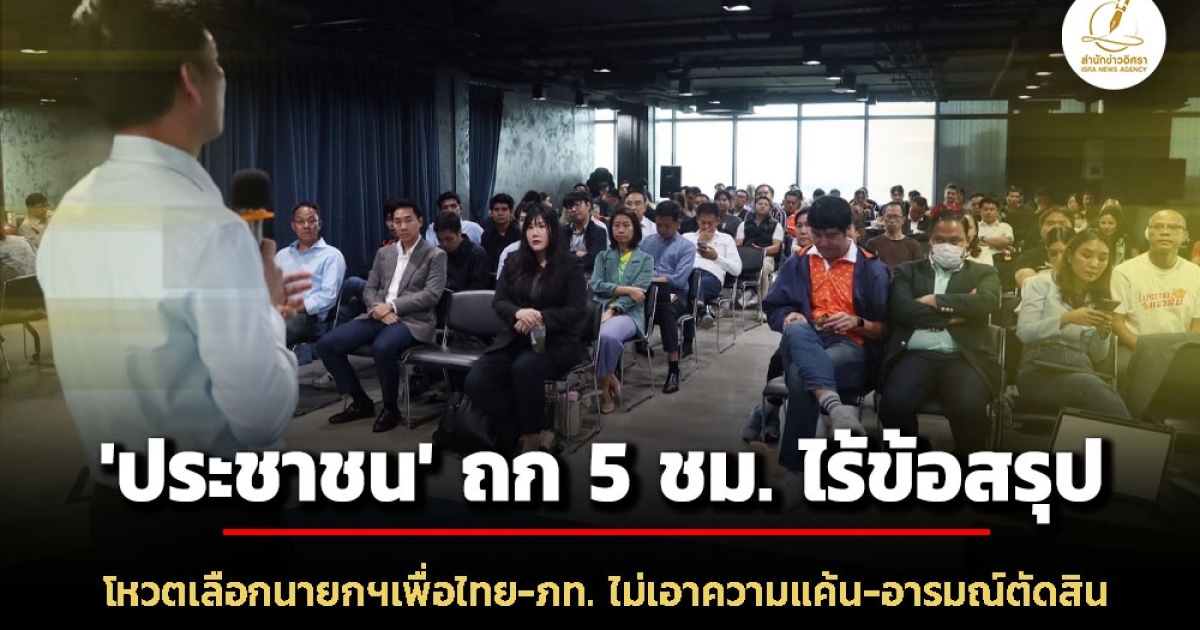 สำนักข่าวอิศรา (www.iranews.org) รายงานว่า วันที่ 1 กันยายน 2568 ที่พรรคประชาชน นายพริษฐ์ วัชรสินธุ สส.บัญชีรายชื่อและโฆษกพรรคประชาชน ออกมาให้สัมภาษณ์ถึงการประชุมสส.นัดพิเศษ เพื่อแลกเปลี่ยนความคิดเห็นและตัดสินใจ กรณีการโหวตนายกรัฐมนตรีตามเงื่อนไขที่พรรคเสนอ ซึ่งใช้เวลาประชุมกว่า 5 ชั่วโมง แต่ยังไม่ได้ข้อยุติและจะมีการประชุมสส.อีกครั้งในวันพรุ่งนี้ (2 ก.ย.68) เวลา 13.00 น. ว่า การประชุมสส.ในวันนี้มีผู้มาร่วมร่วมประชุม 90 กว่าคน หรือ 60 % จากจำนวน สส.ทั้งหมด 143 คน ส่วน สส.ที่เหลือที่ไม่มาประชุมเนื่องจากติดภารกิจการประชุมคณะกรรมาธิการที่มีกำหนดการประชุมล่วงหน้า และการลงพื้นที่