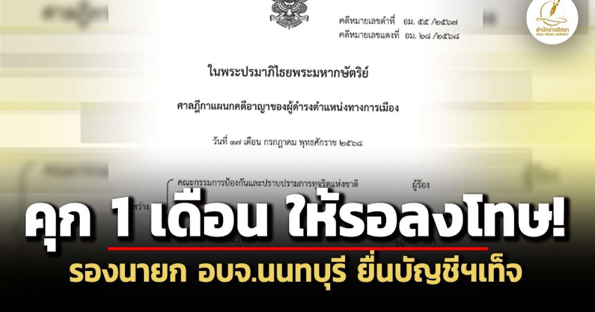 - ศาลฎีกาฯสั่งจำคุก 1 เดือน -รอลงโทษ รองนายกเทศฯ ต.โพธิ์ชัย ร้อยเอ็ด ยื่นบัญชีฯเท็จ