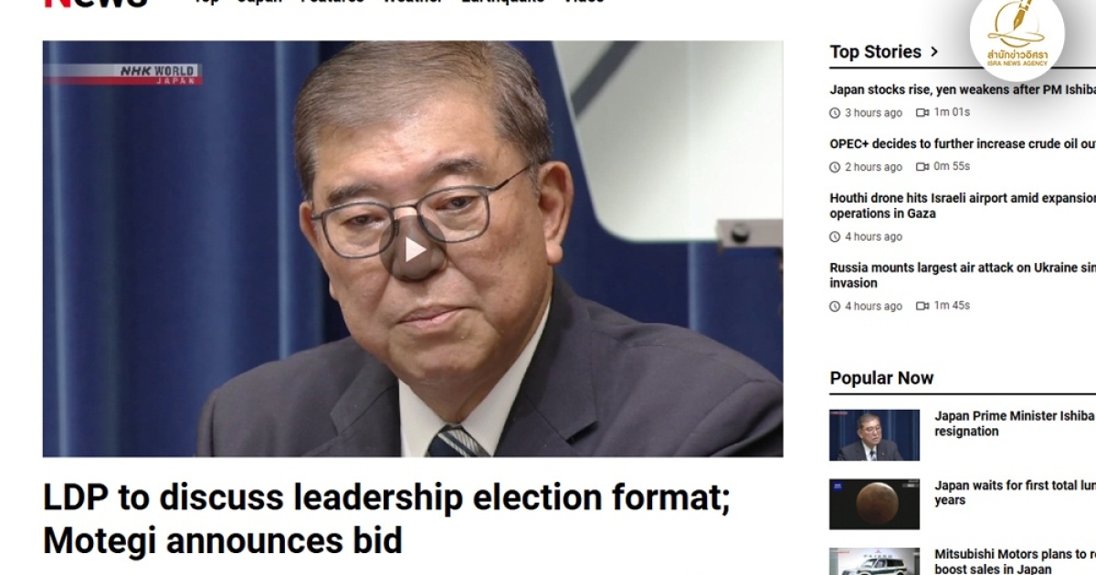 สำนักข่าวอิศรา (www.isranews.org) รายงานข่าวสถานการณ์การเมืองญี่ปุ่นหลังจากที่นายอิชิบะ ชิเงรุ ประกาศลาออกจากตำแหน่งนายกรัฐมนตรีญี่ปุ่นว่า