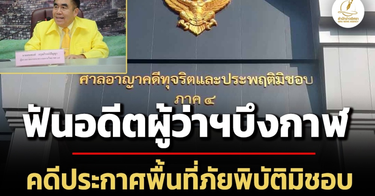ศาลอาญาคดีทุจริตฯภาค 4 พิพากษา อดีตผู้ว่าฯบึงกาฬมีความผิด คดีทุจริตสมคบนายอำเภอประกาศ 7 อำเภอเป็นพื้นที่ภัยพิบัติ ช่วงปี 54 เอื้อประโยชน์ทำสัญญาซื้อสารป้องกันเชื้อหา ทั้งที่เกษตร 7 อำเภอแย้งว่าเชื้อราในนาข้าวไม่รุนแรงถึงภัยพิบัติ