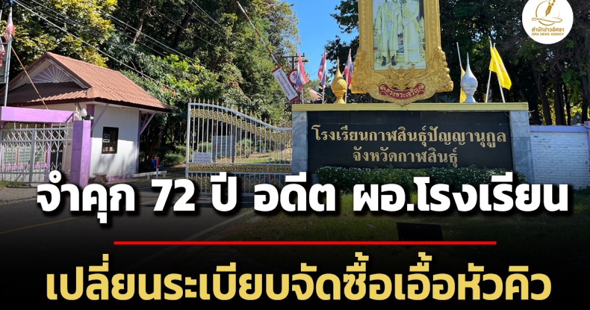 ศาลพิพากษาจำคุก 72 ปี 6 เดือน อดีต ผอ.โรงเรียนกาฬสินธุ์ปัญญานุกล ส่วนจำเลยอีก 2 คน เจอโทษจำคุก 29 ปี 232 เดือน คดีทุจริตเปลี่ยนระเบียบจัดหาวัตถุดิบทำอาหาร ให้โรงเรียนจัดหาเองแทนที่จ้างเหมาบุคคลภายนอก แต่ปรากฎทางปฏิบัตินำเงินหักหัวคิวเข้าตัวเองก่อนไปจ้างบุคคลภายนอก