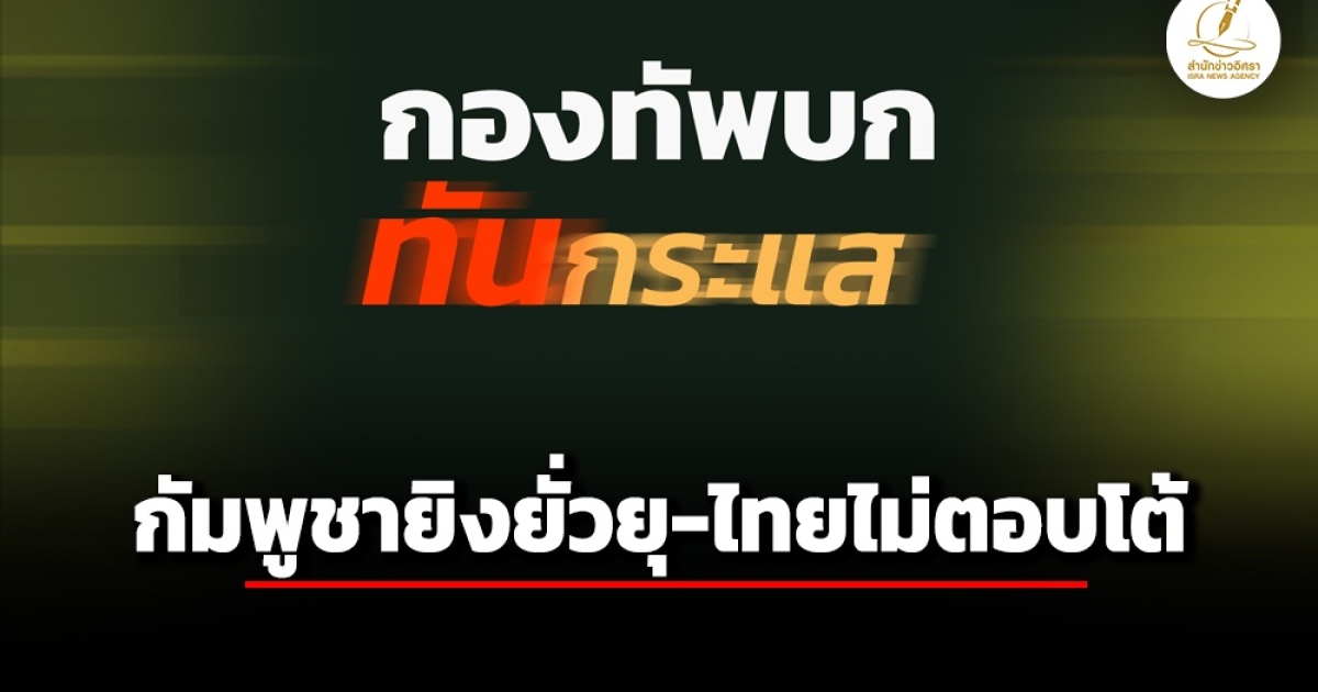 เพจ กองทัพบก ทันกระแส โพสต์เฟซบุ๊ก ยืนยันยังไม่มีการปะทะ บริเวณ ช่องอานม้า อำเภอน้ำยืน จังหวัดอุบลราชธานี มีการยิงยั่วยุจากกัมพูชา ทั้งปืนกล-เครื่องยิงลูกระเบิด แต่ไทยไม่ตอบโต้ ขอประชาชนเข้าใจ-เชื่อมั่นสถานการณ์ อย่างหลงกล-เข้าทางกัมพูชา