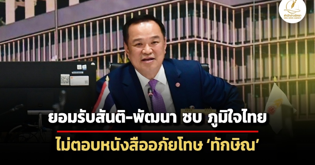 ‘อนุทิน’ ยอมรับสองพ่อลูก ‘พร้อมพัฒน์’ สันติ-พัฒนาซบ ‘ภูมิใจไทย’ จริง ไม่ตอบลากกลุ่มมาเพิ่มหรือไม่ ไม่ตอบหลังสื่อถามเห็นหนังสืออภัยโทษ ‘ทักษิณ’ หรือยัง