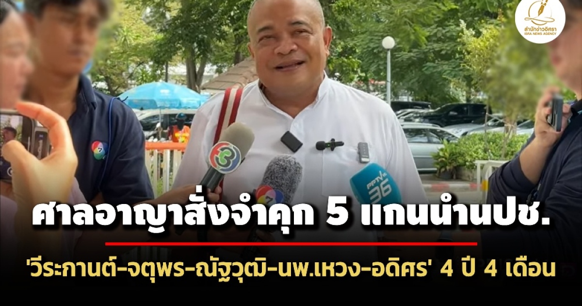 ศาลอาญาสั่งจำคุก 5 แกนนำนปช.ชุมนุมไล่รัฐบาลอภิสิทธิ์ ปี 2552 'วีระกานต์-จตุพร-ณัฐวุฒิ-นพ.เหวง-อดิศร' 4 ปี 4 เดือน ไม่รอลงอาญา-ให้ประกันตัวคนละ 2 แสนบาท-ห้ามออกนอกประเทศ